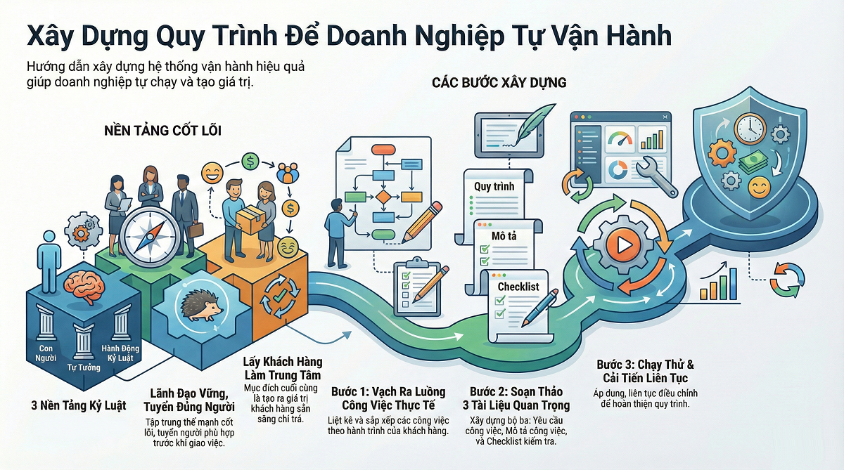 Cách viết quy trình cho công ty giúp doanh nghiệp tự chạy và vẫn tạo doanh thu, bài viết sau đây sẽ tổng hợp kiến thức dưới dạng infographic.
